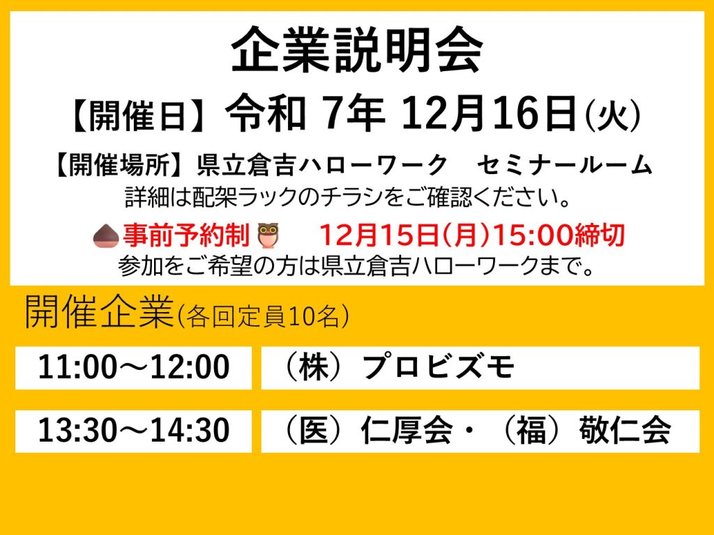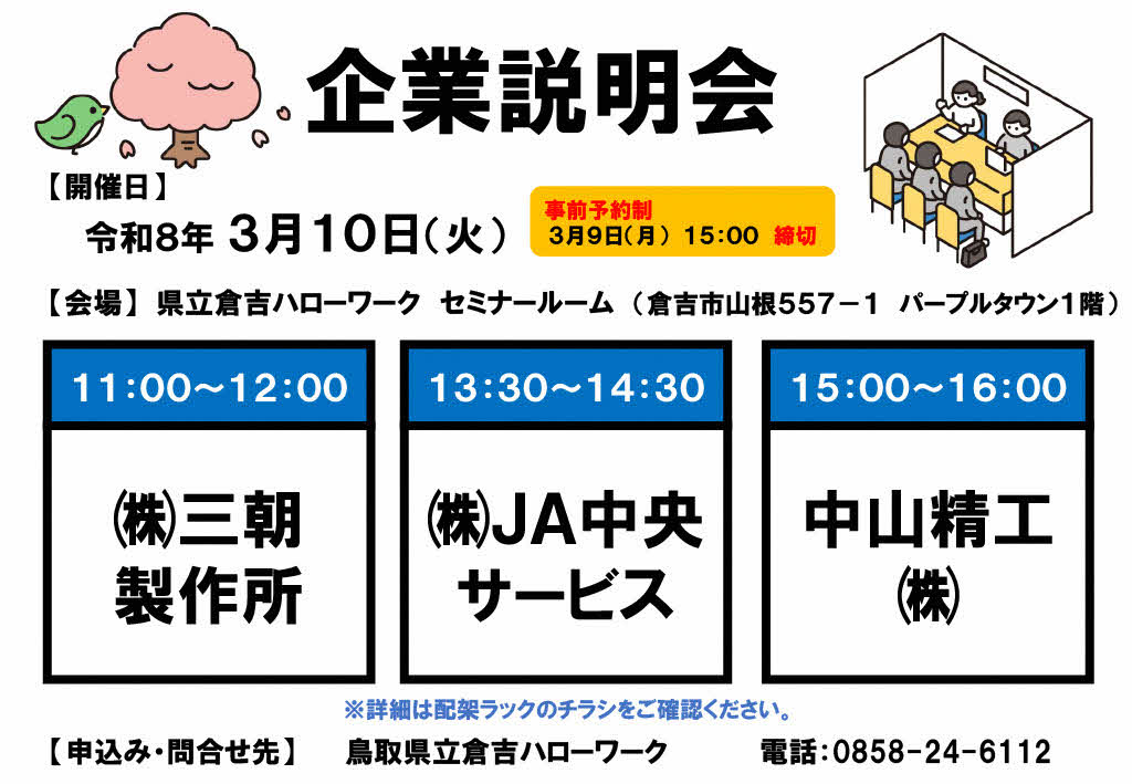 【県立倉吉ハロ-ワ-ク】求職者向け企業説明会