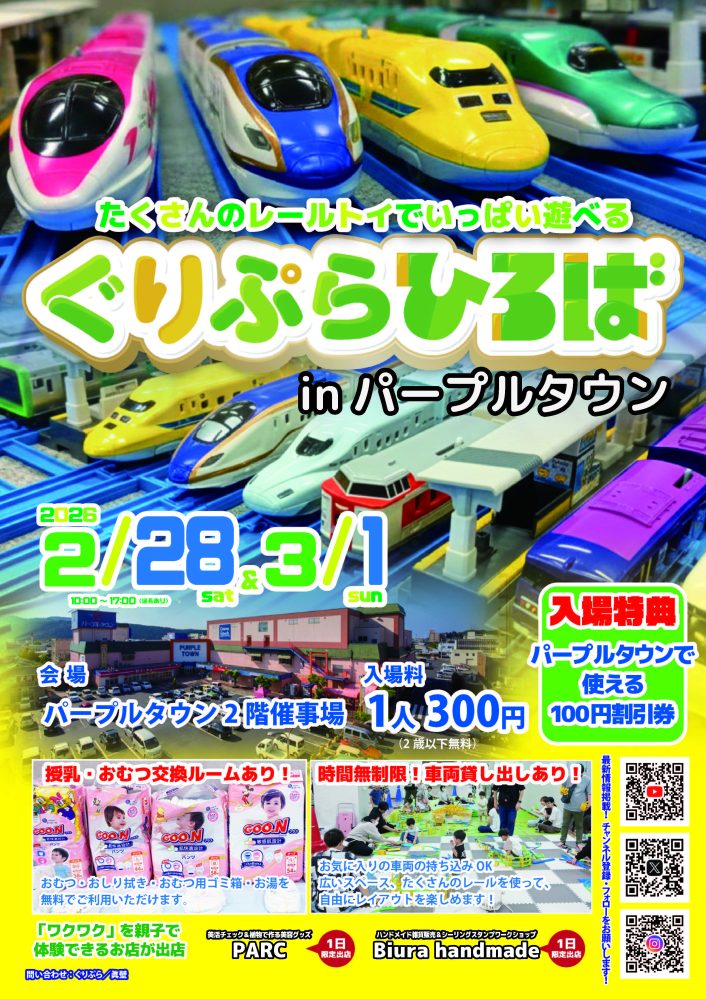 ★ぐりぷらひろばinパープルタウン★ 2/28-3/1に倉吉市のショッピングセンター「パープルタウン」で 大量のプラレールを使って広い場所で 思いっきり遊べる【ぐりぷらひろば】を開催します。 屋内ですので寒くて天候が悪い […]