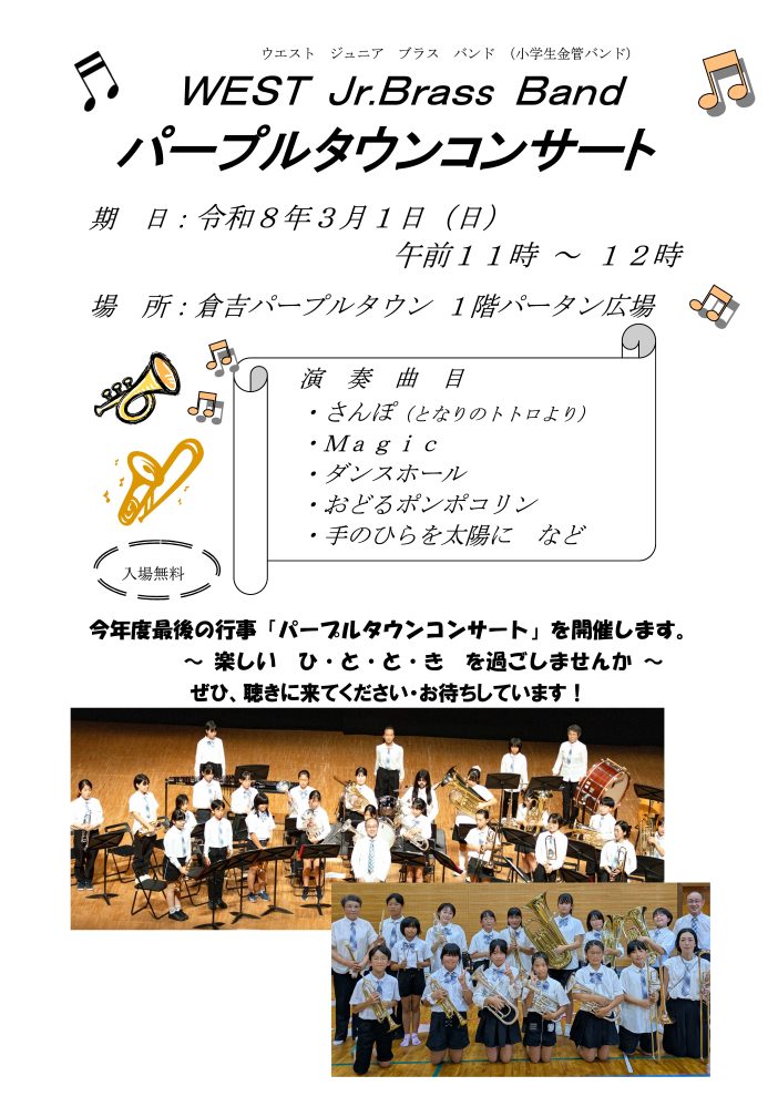 3月1日(日)WEST Jr.Brass Band パープルタウンコンサート