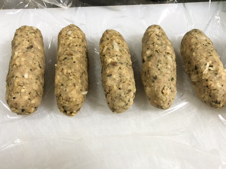 大豆、玄米、小麦等を主原料にし、野菜、ハーブ等で味付けしたベジタリアンソーセージの素です。
