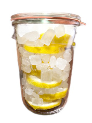②レモンと氷砂糖を同じグラムぐらい用意します。