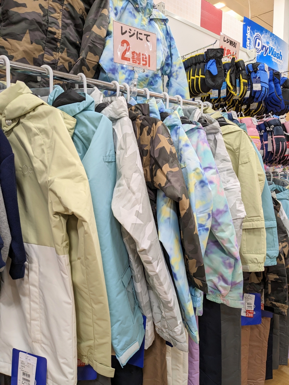 雪が降り、雪遊びやスキーなどが楽しめるようになりました! 本館2階衣料品店のパレットでは、お子様用のナイロン製スノーグローブとウェアを取り揃えております♪