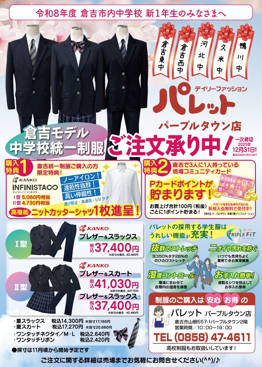 ご購入・お問い合わせはパレットパープルタウン店まで TEL 0858-47-4611