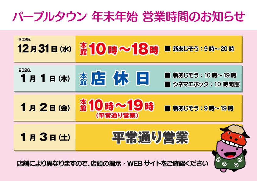 12月31日は本館10時~18時閉店