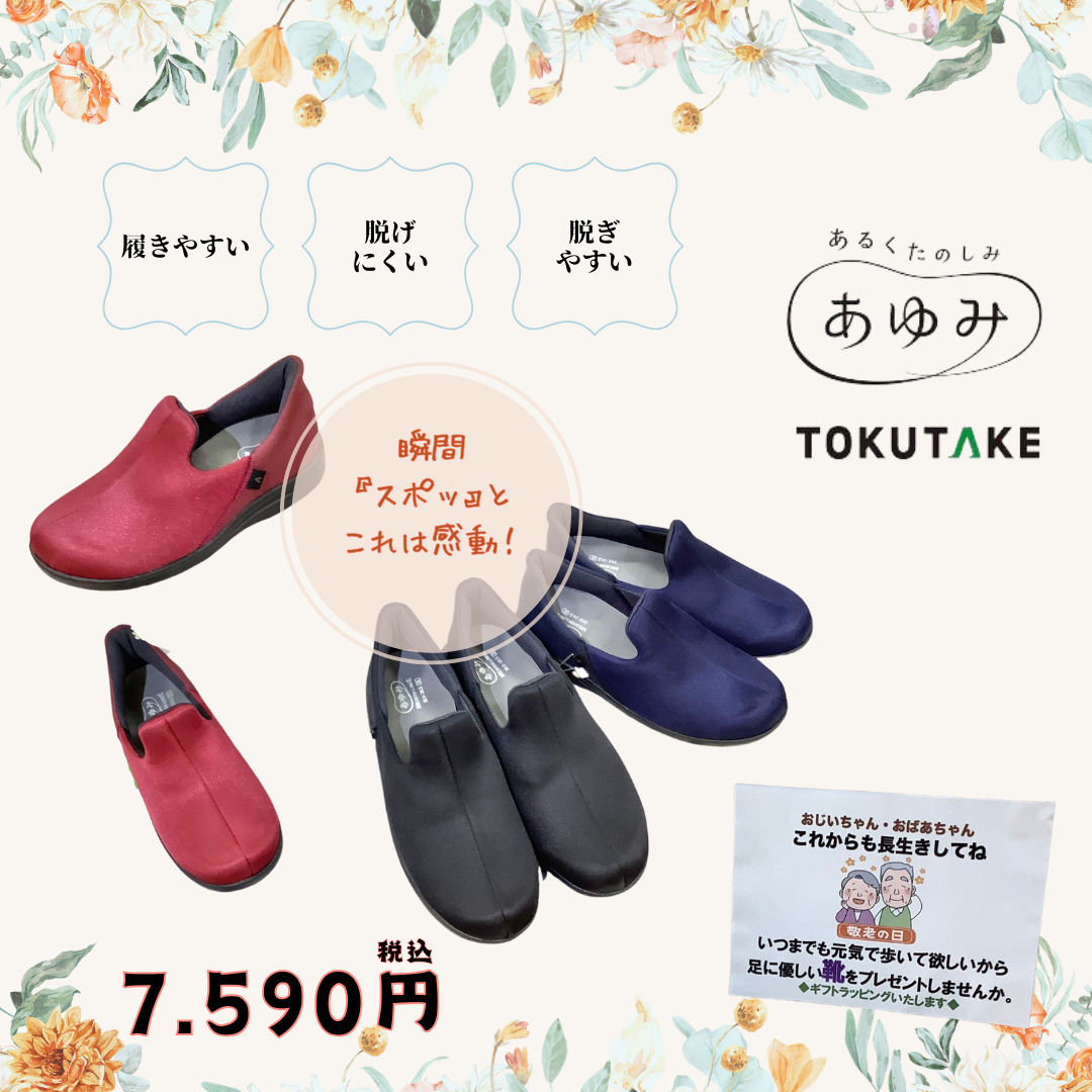 今、人気のスポッ!と履ける靴があゆみシューズからも登場♪ ①履きやすい ②脱げにくい ③脱ぎやすい 一度履いたら感動☆