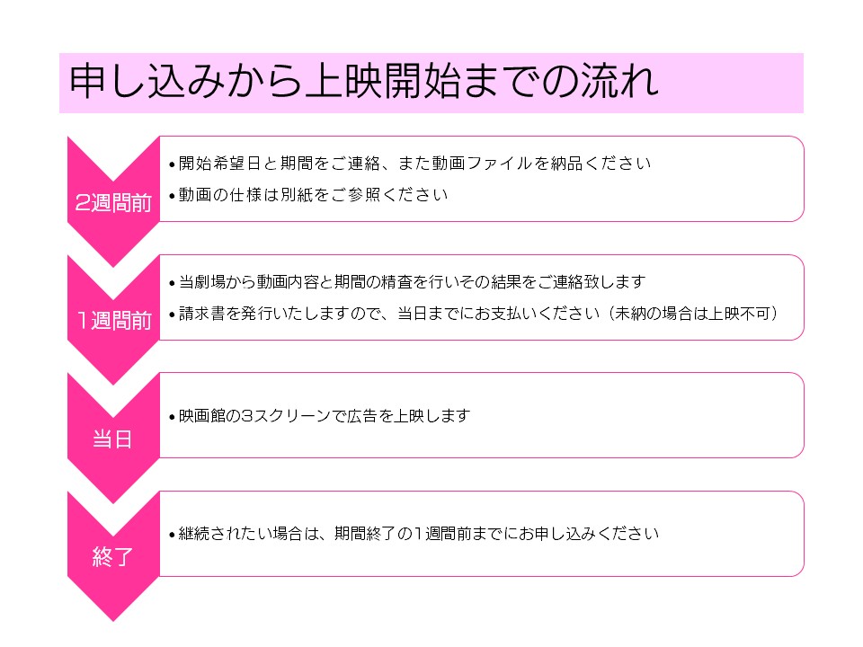 お申込み後、実際の上映期間をご連絡いたします。